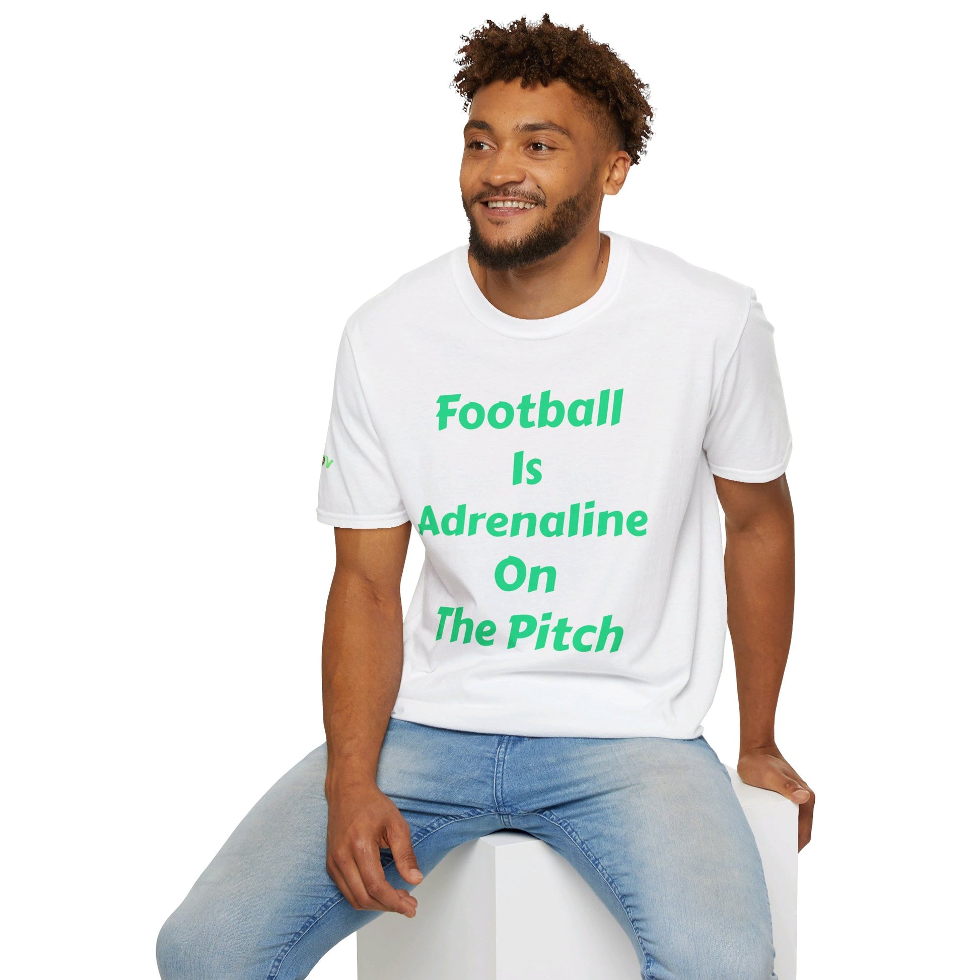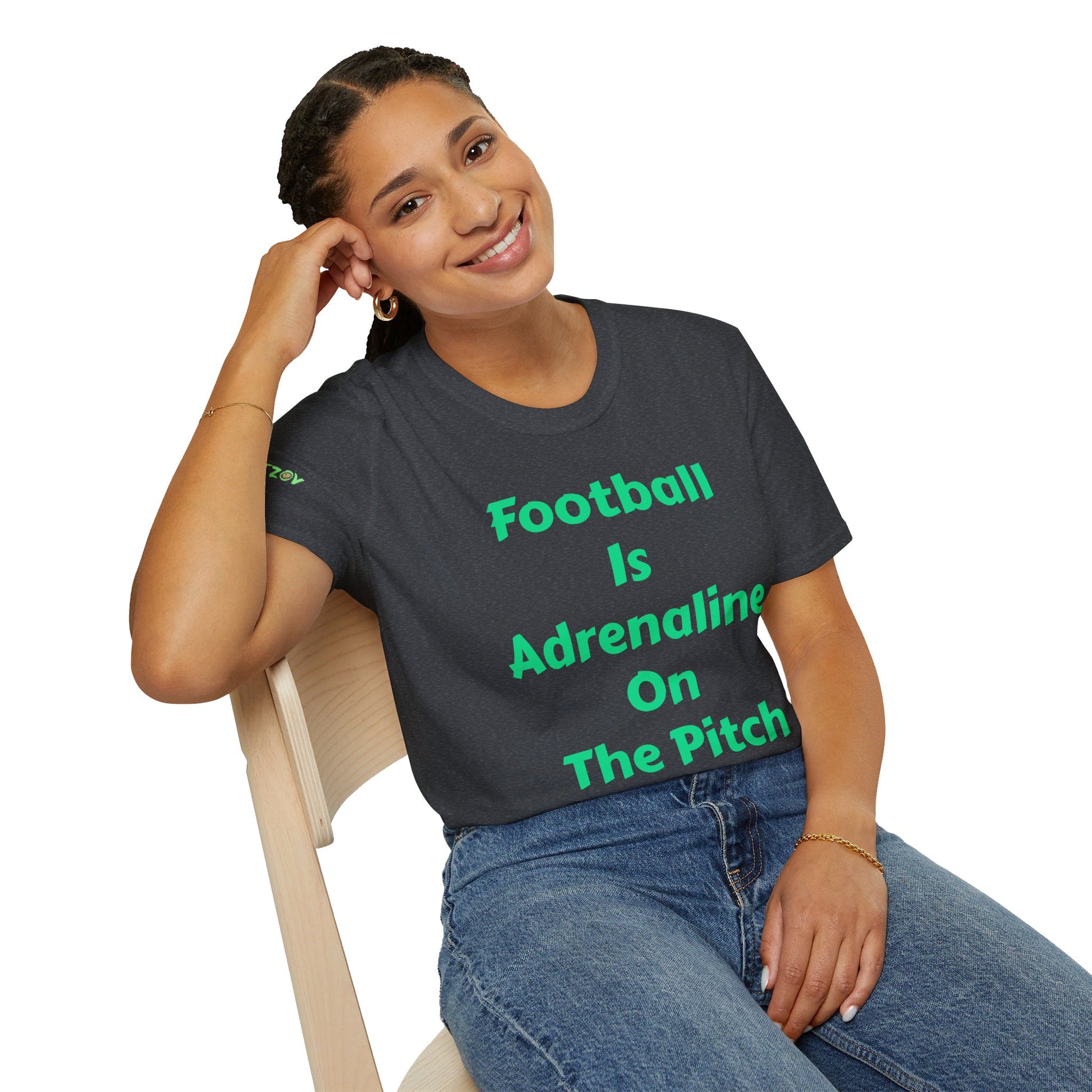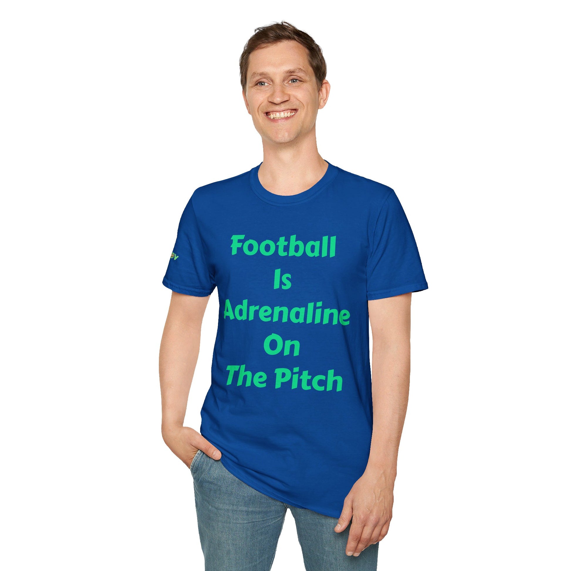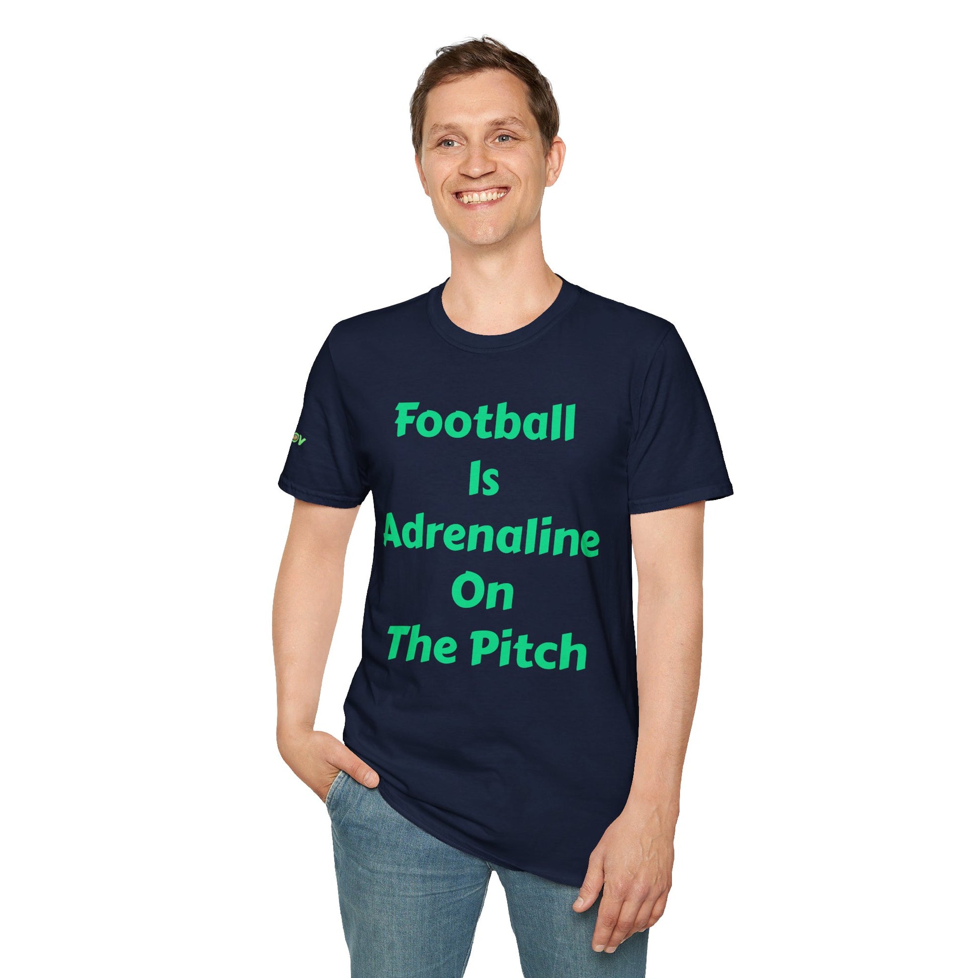 Get yourself wearing this T-shirt: Football is adrenaline on the pitch. If you are a football fan or know someone who is, this will be the perfect gift.