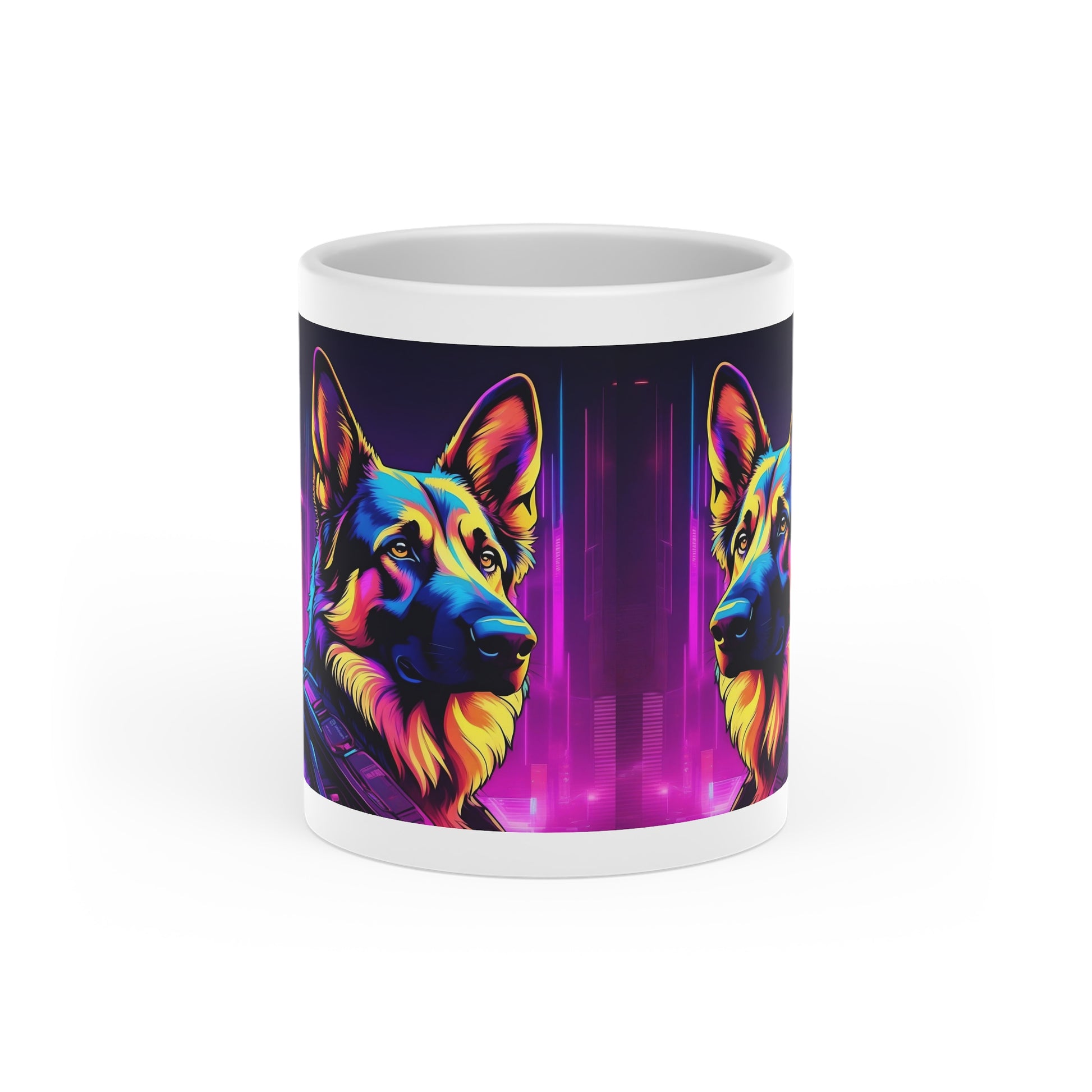 The loveliest way to start any day is with this: Neon Punk German Shepherd | Mug with Heart-Shaped Handle.